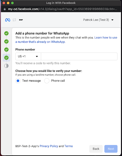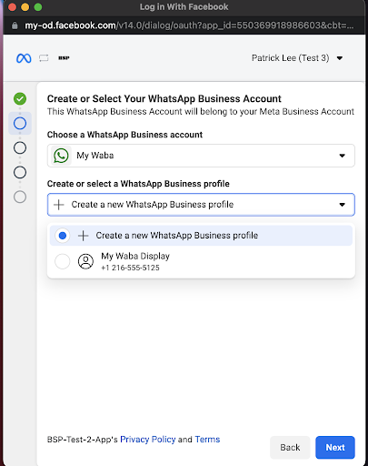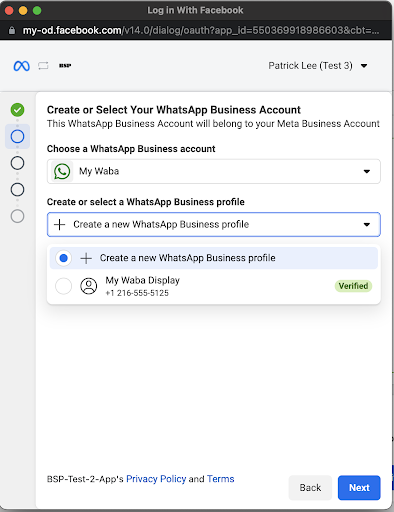 The new flow is standardized such that regardless whether a user is adding or selecting a new WABA/phone profile, the flow is the same. From this screen the user can do one of the following: