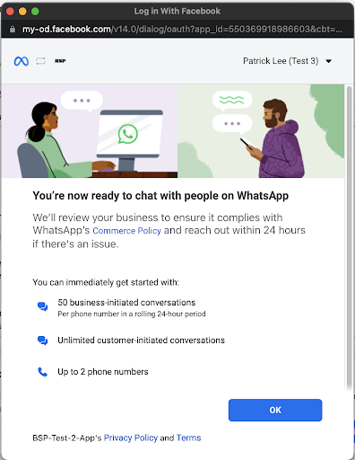With Embedded Signup, businesses own their WhatsApp Business Accounts and grant their Solution Partners direct access to them.